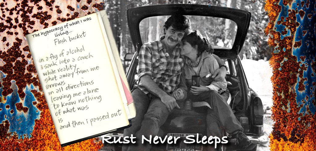 As stated in my opening, “Rust Never Sleeps” this poem came as a result of a sever hangover and with years of the tugging-battle, “Just three beers, hold it to a six pack, just nine…” and failure after failure I knew I was out of control. In my own case I would get drunk once a week, maybe it was once every two weeks, but I had no ultimate control of my drinking and my addictive behaviors. To not go to the depths of the car I loved and totaled, the cars I damaged. or most importantly the risk I put on myself and others was driving myself into the ground.